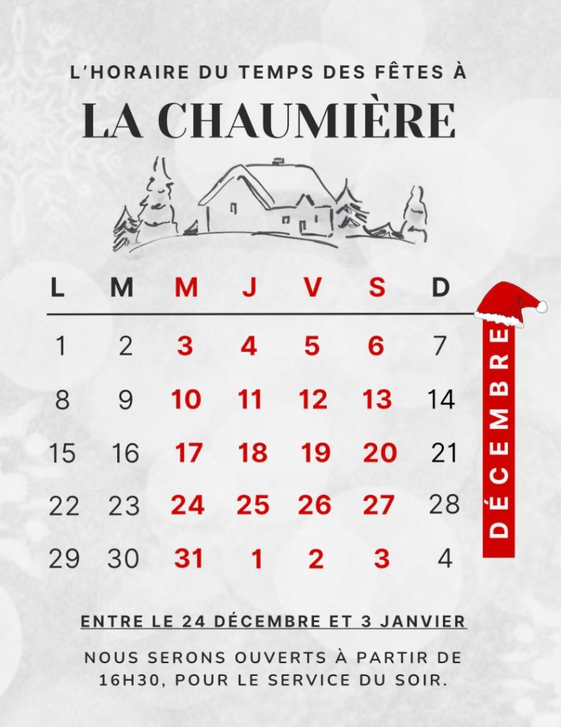 🎄 Les dates en rouge représentent nos journées d’ouverture.